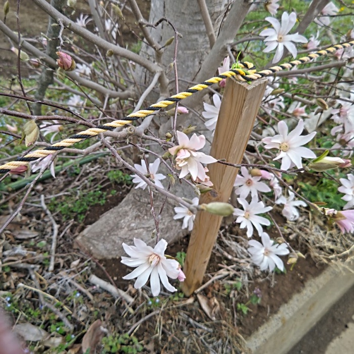 真ん中右寄りのコブシの白い花がいつも目印になります。